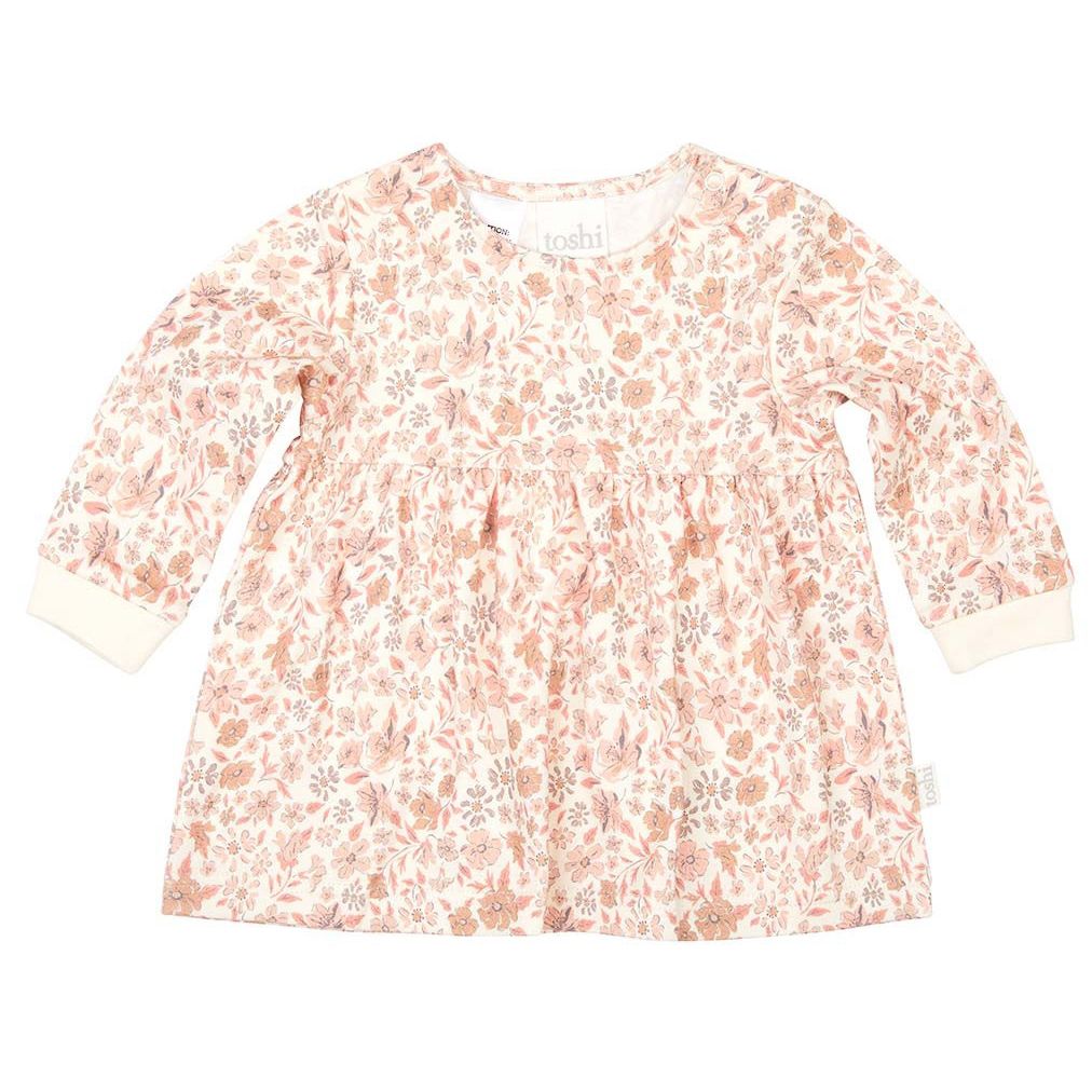 Toshi Baby Dress Classic Honey is offered in an original and exclusive print design and features a classically petite floral illustration.