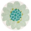 A modern, hand tufted wool rug featuring a delightful flower in shades of blue and green, with hand carved detailing. This charming rug brings a fresh, contemporary touch to any space while offering the natural warmth and softness of wool.